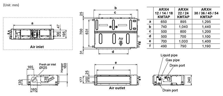 Kanalgerät für mittleren statischen Druck Hohe Effizienz & Komfort ARXH24KMTAP