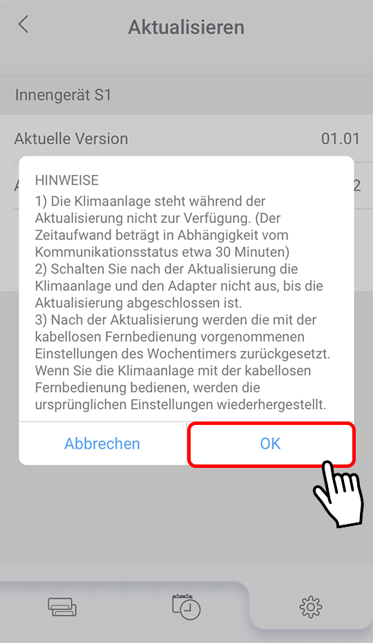 - Die Klimaanlage kann während des Updates nicht verwendet werden.