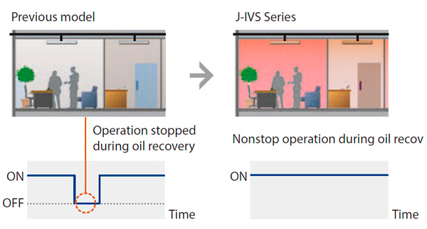 En mode de retour de l'huile, le produit fonctionne en maintenant le chauffage ou le refroidissement, ce qui permet de conserver une température ambiante agréable.