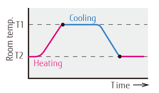 De automatische modus schakelt airconditioners automatisch tussen koelen en verwarmen en wordt ingeschakeld door de combinatie van de sensorschakelaar en een externe schakelcontroller.