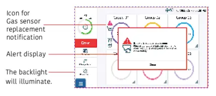 Een jaar voor de uiterste datum voor vervanging van de detector verschijnen een bericht en een pictogram en gaat de achtergrondverlichting van het display branden. Dit geeft aan dat het tijd is om de detector te vervangen.