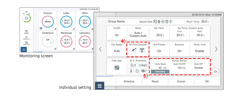 Wanneer de centrale afstandsbediening de binnendelen van sommige huurders beheert, kan de airconditioning van elke huurder afzonderlijk online worden beheerd.