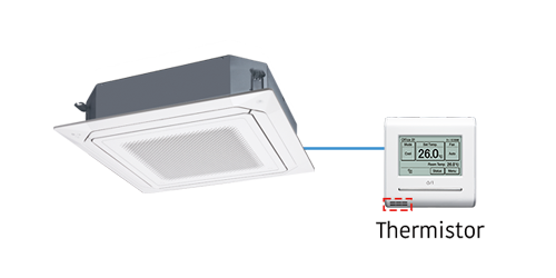 Het model kan de ruimtetemperatuur detecteren met sensoren voor binnendelen, zelfs als afstandsbedieningen met snoerverbinding hier niet op zijn aangesloten.