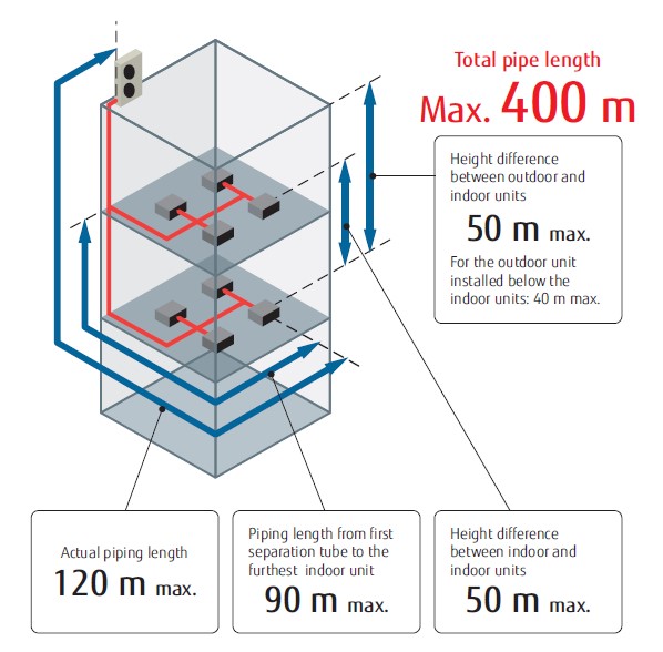 Dankzij onze geavanceerde technologie voor koudemiddelregeling is een leidinglengte voor het koudemiddel van maar liefst 400 meter mogelijk. Dit biedt nieuwe mogelijkheden in het systeemontwerp.