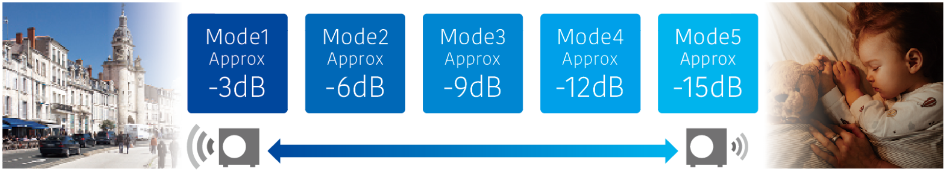 - Bij gebruik van deze functie kunnen de koel- en verwarmingsprestaties afnemen. De geluidsverminderingswaarde in de geluidsarme modus varieert afhankelijk van het model.
