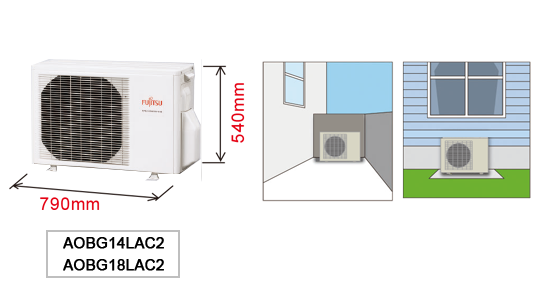 A unidade externa, projeto compacto, pode ser instalada facilmente em varandas, telhados, paredes ou em qualquer lugar.