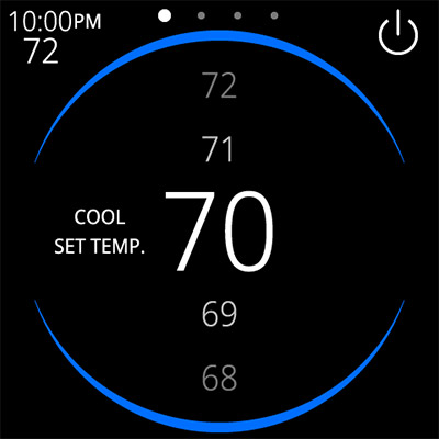 - UI : Faites glisser votre doigt vers le haut/bas, vers la gauche/droite : Ajustez le réglage (par exemple, la température) vers le haut ou vers le bas et vers la gauche/droite : Faites défiler les réglages