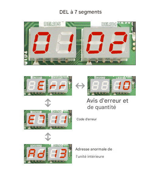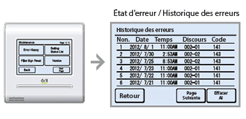 - Adresse, code d'erreur et nombre d'erreurs d'une unité intérieure en panne