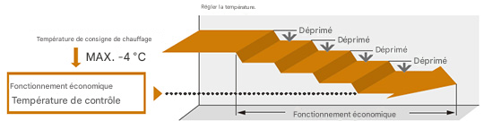 Le mode éco peut être réglé à partir d'une télécommande. La température définie précédente est remplacée automatiquement de manière progressive.