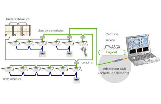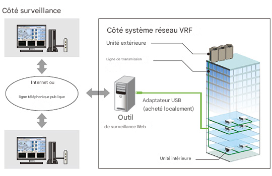 Le système de réseau VRF d'un bâtiment peut être surveillé en temps réel via Internet.