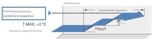 Le mode température ambiante permet de maintenir la température définie à l’aide du thermostat (marche/arrêt). Les économies d’énergie sont améliorées grâce au fonctionnement continu du compresseur.