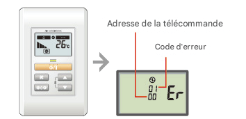 Pour les unités intérieures, l'état d'erreur peut être contrôlé à l'aide d'une télécommande filaire.