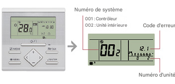 L'état d'erreur peut être contrôlé sur l'écran d'une unité extérieure.