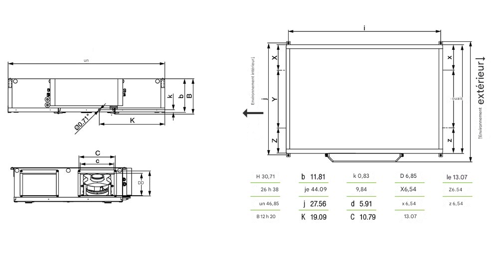 | Type de ventilation | Ventilateur récupérateur de chaleur (VRC) |