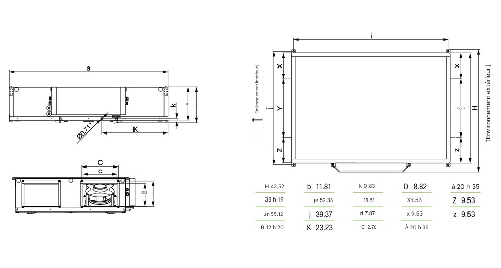 Rendement énergétique exceptionnel grâce à son échangeur thermique en aluminium à contre-courant situé au cœur de l’appareil.