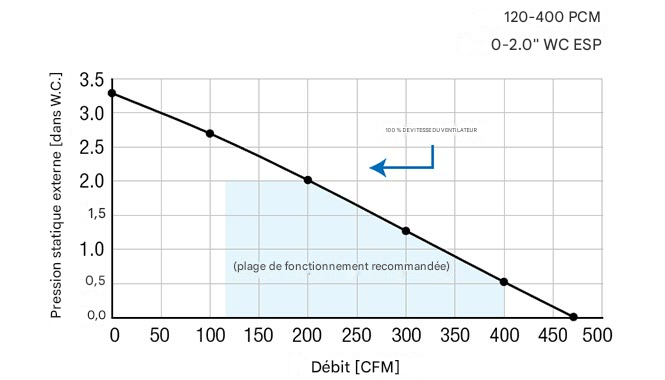 | Débit de ventilation typique | De 120 à 480 pi³/min |