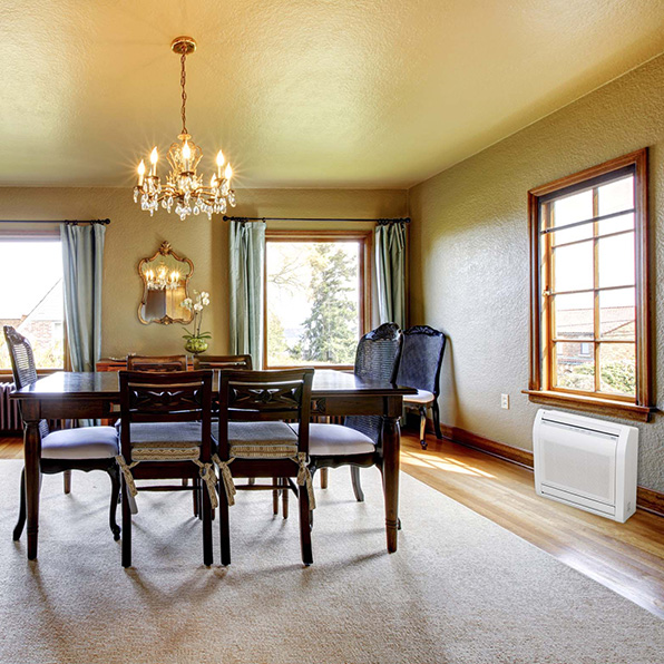 Ces modèles modernes et épurés sont idéaux pour remplacer des radiateurs résidentiels ou pour toute pièce dont la partie supérieure des murs est restreinte. Il existe deux séries différentes de produit à installation au sol : la gamme RLFF qui assure le chauffage jusqu’à des températures extérieures de -5 °F et la gamme RLFFH qui assure le chauffage jusqu’à des températures extérieures de -15 °F, pour les climats extrêmement froids.