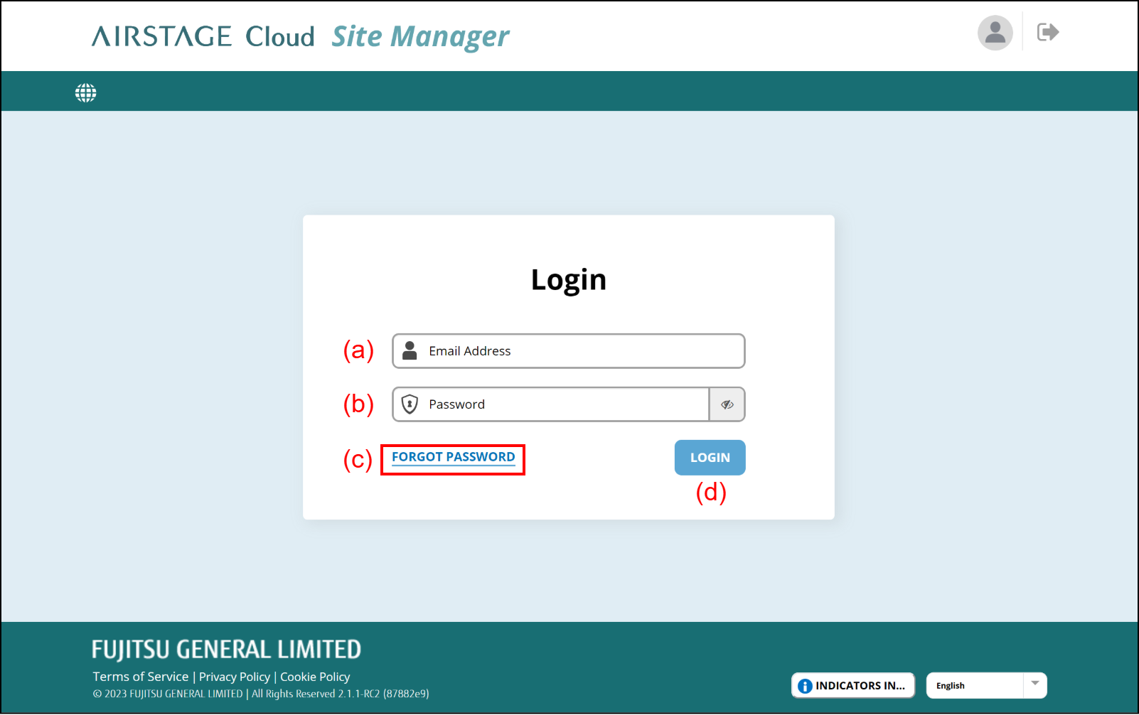 قم بالدخول إلى AIRSTAGE Cloud Site Manager من جهاز الكمبيوتر الشخصي أو الجهاز الذكي الخاص بك.