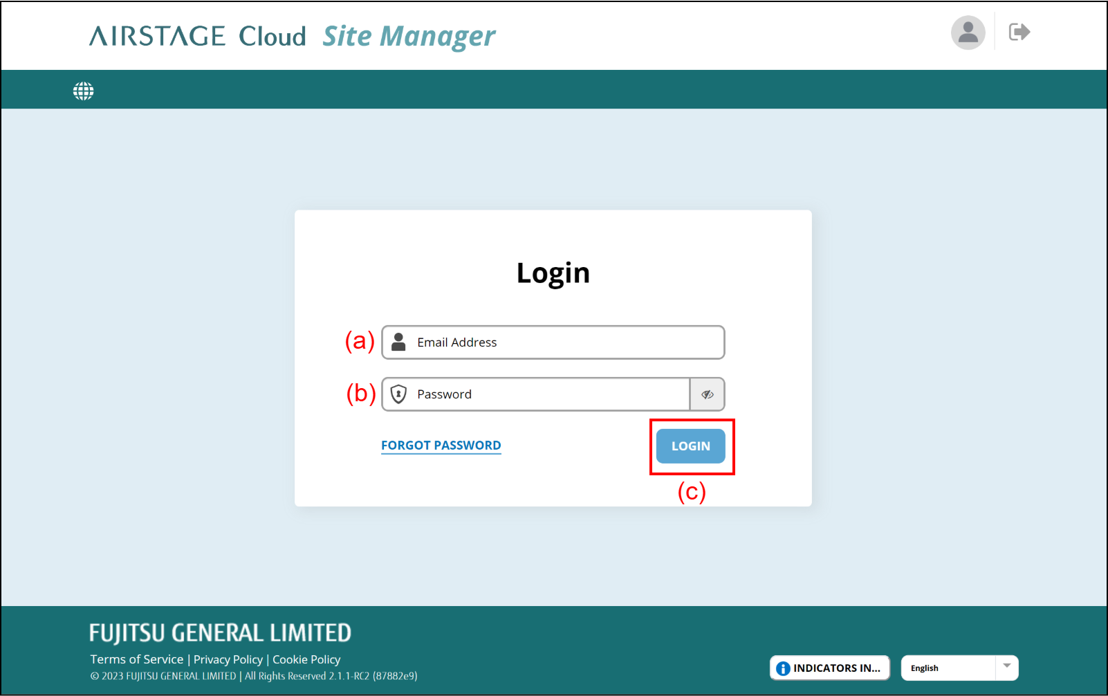 يتم كتابة كلمة المرور لمرة واحدة في رسالة البريد الإلكتروني للدعوة. يتم إرسالها عندما يقوم المسؤول بإنشاء حساب AIRSTAGE Cloud Site Manager الخاص بك. - قم باختيار الزر (c).