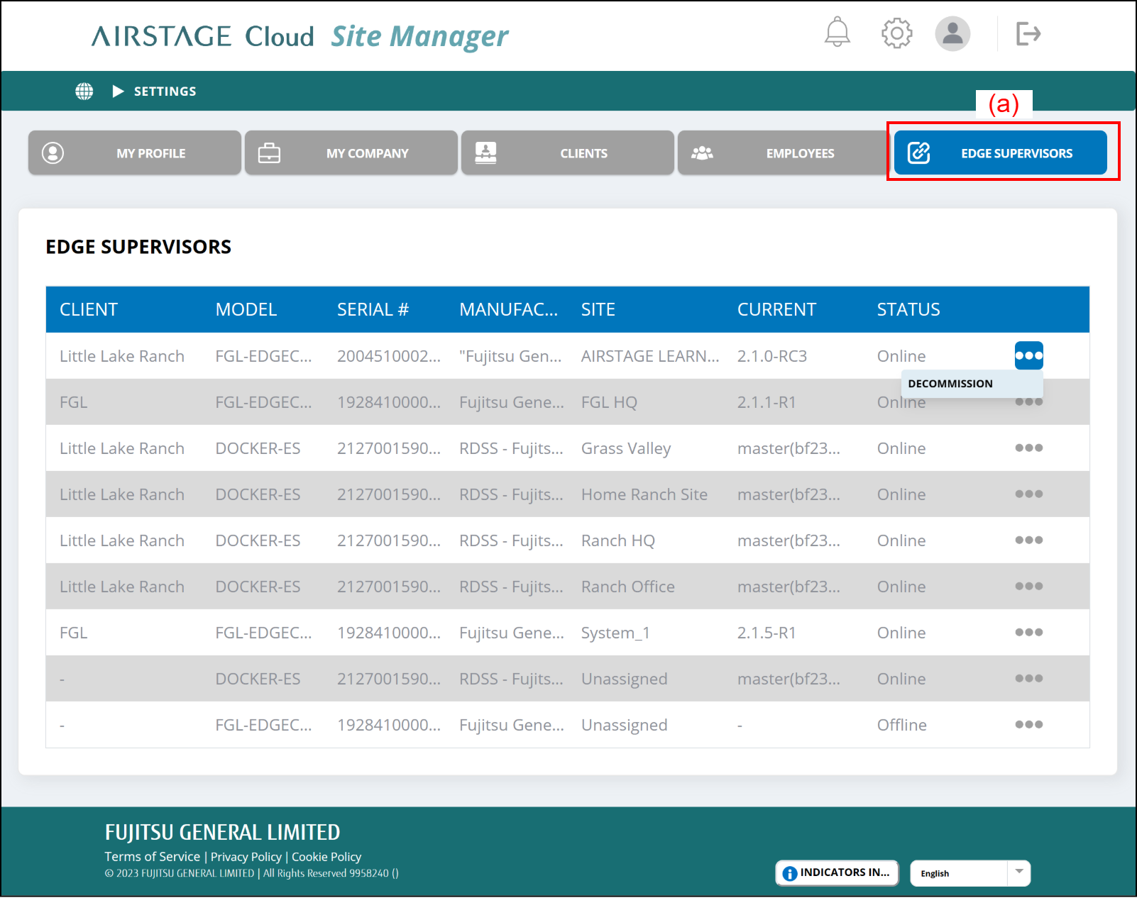يمكنك التحقق من معلومات Edge supervisor أو حذفها.