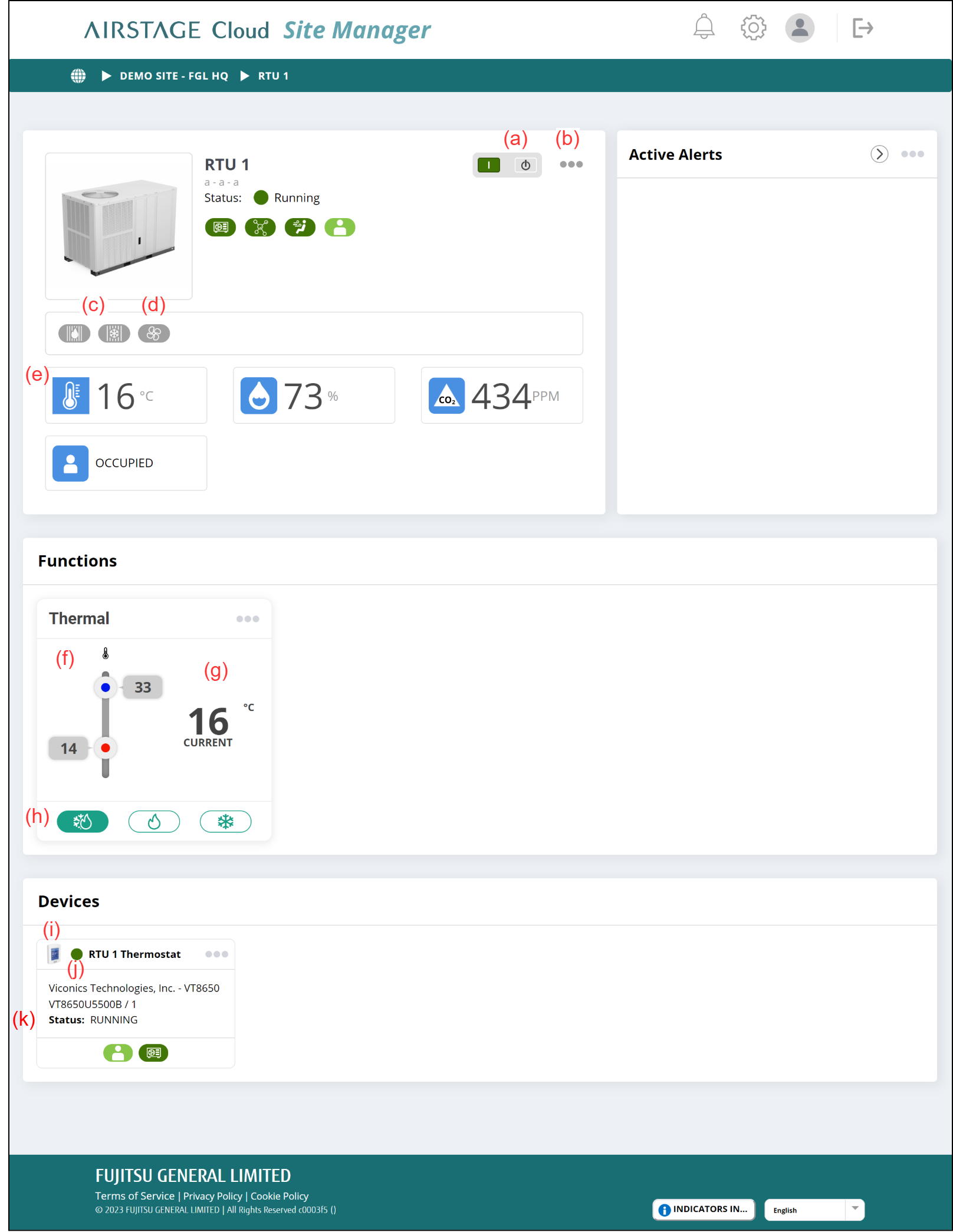 يظهر تنبيه في منطقة "Active Alerts" عندما تصل حالة وحدة السطح إلى مستوى خطورة متوسط أو حرج.