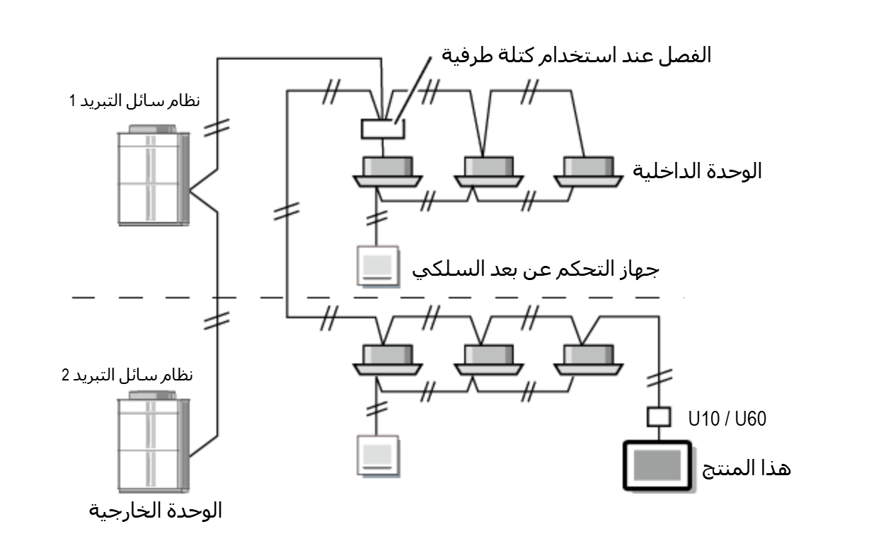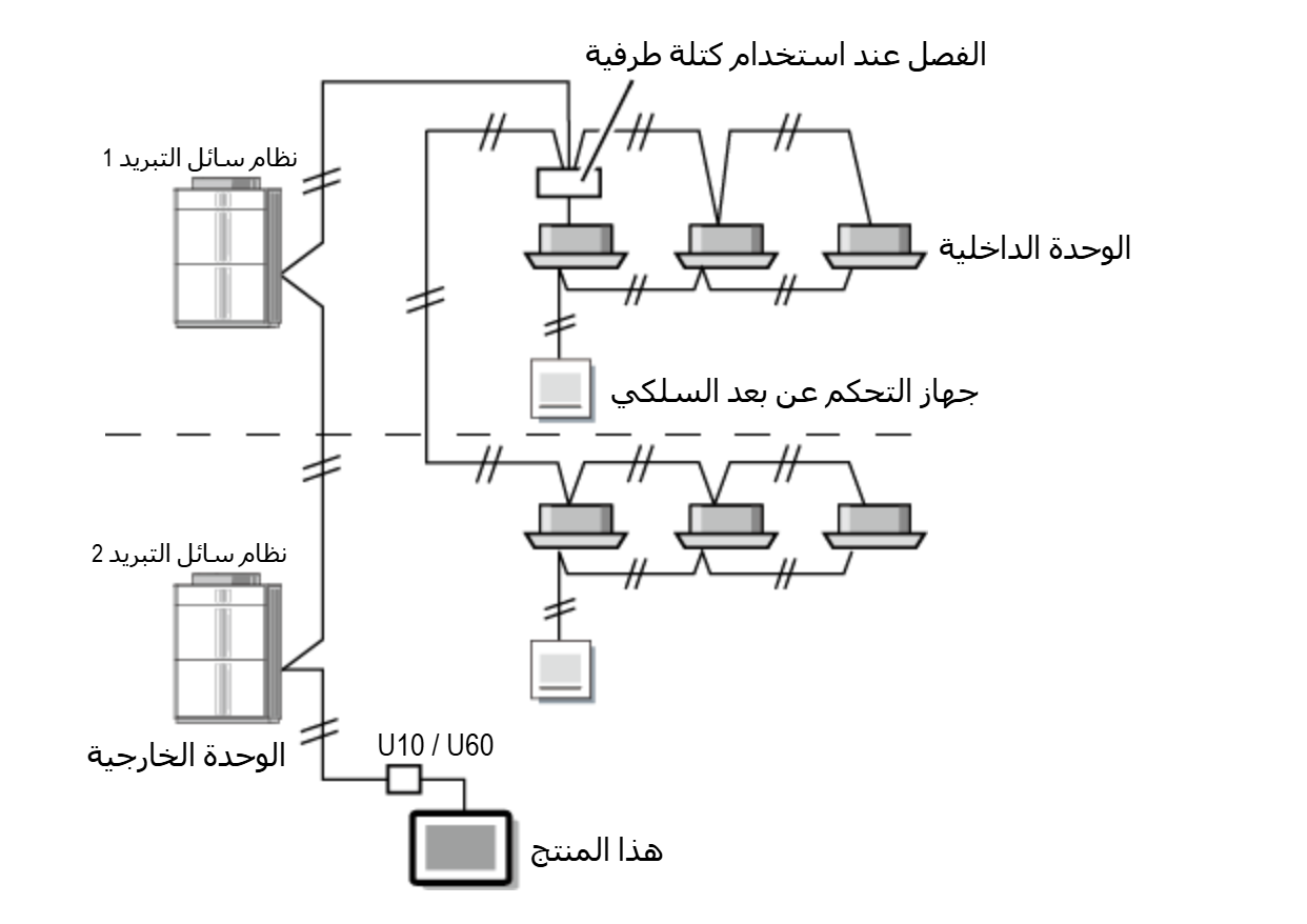عند تمديد الأسلاك بين الوحدة الخارجية والوحدة الداخلية وهذا المنتج، راجع أدلة تركيب الوحدة الداخلية والوحدة الخارجية.