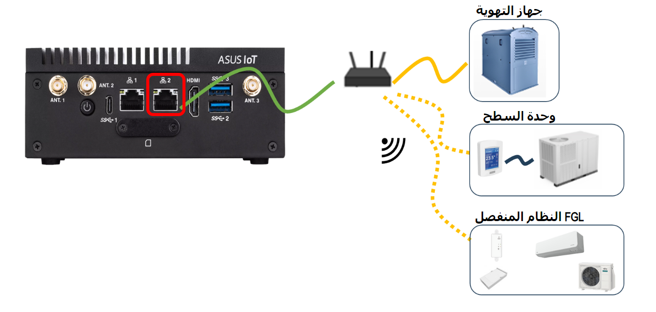 قم بتوصيل منفذ LAN 2 بكابل إيثرنت.