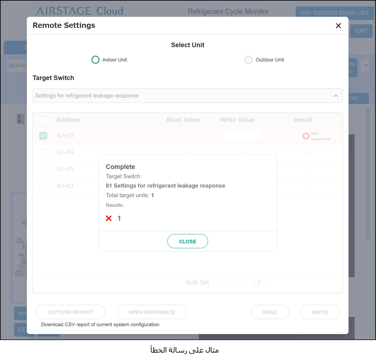- يمكن استخدام الوظيفة “CAPTURE REPORT” لإخراج القيمة الحالية لإعدادات الوظيفة لجميع الوحدات الداخلية والخارجية والتحقق منها جميعًا بصورة جماعية.