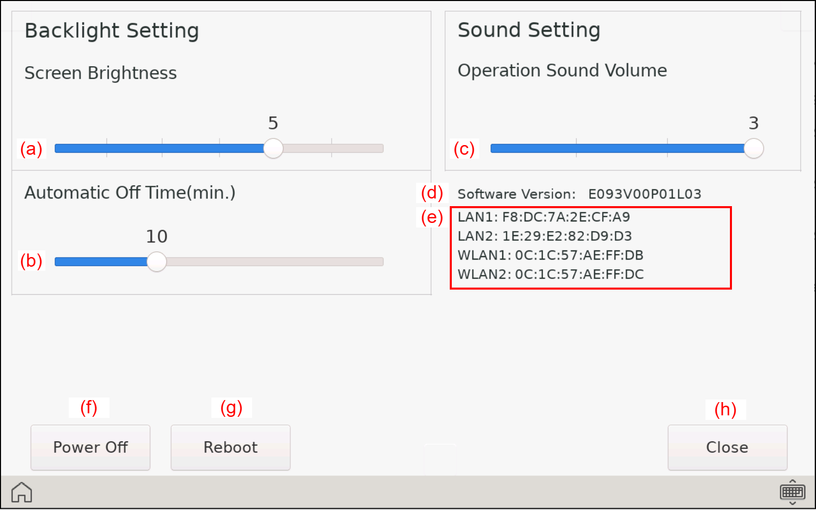 (c) Operation Sound Volume setting