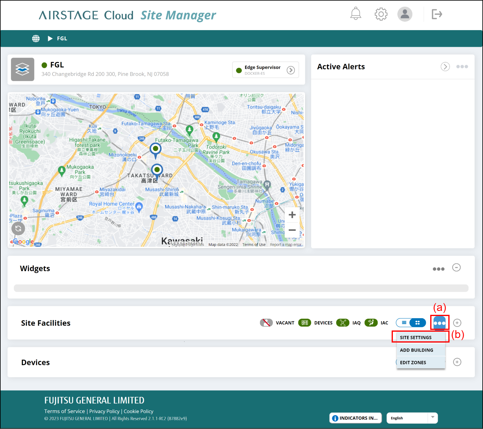 Select the button (a) of "Site Facilities" in the Site dashboard screen.