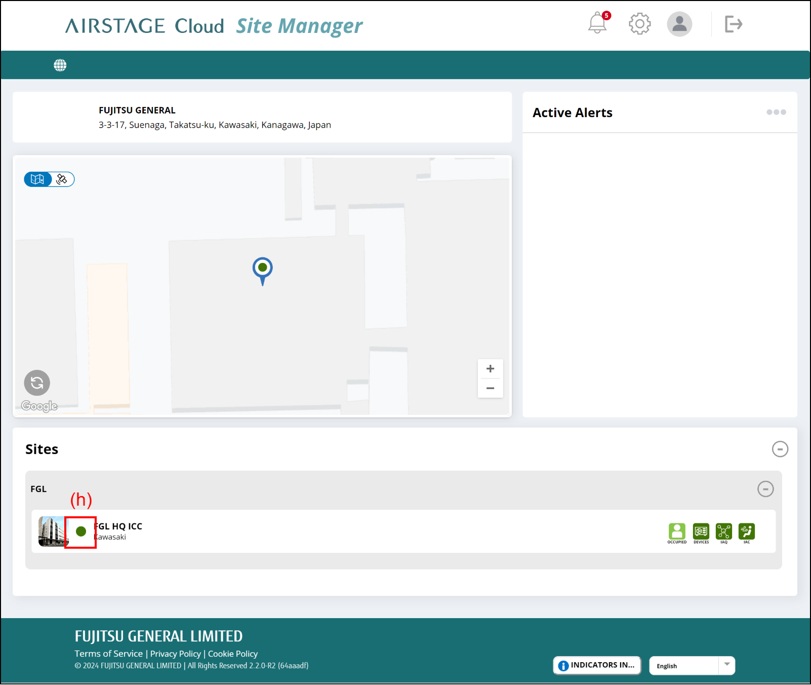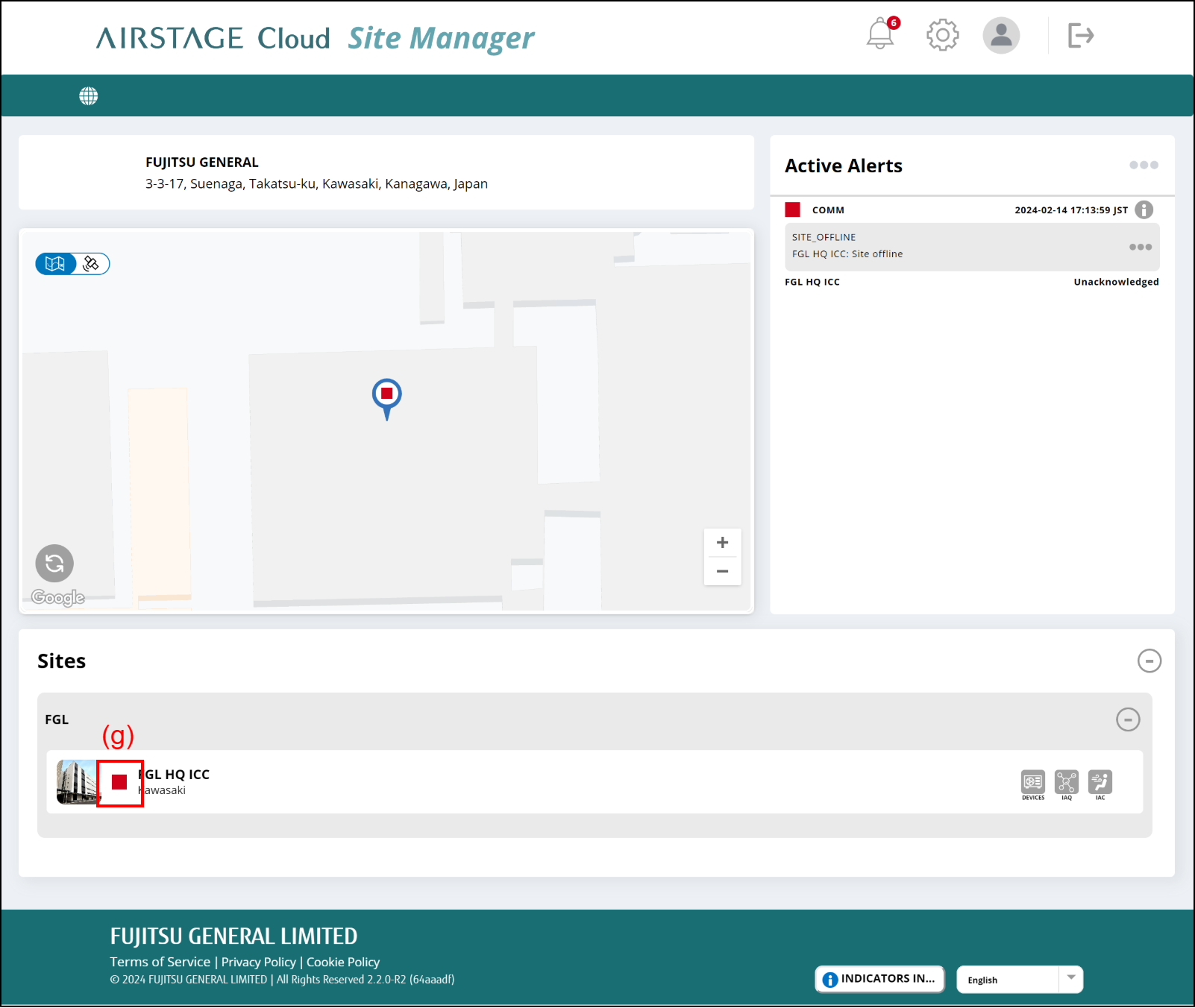 - When AIRSTAGE Cloud Edge Supervisor reboots automatically and it is assigned to the Site, a red square icon is displayed as shown in (g). When the assignment to Site is complete, it changes to a green round icon as shown in (h). It takes 20 to 30 minutes to complete the assignment.