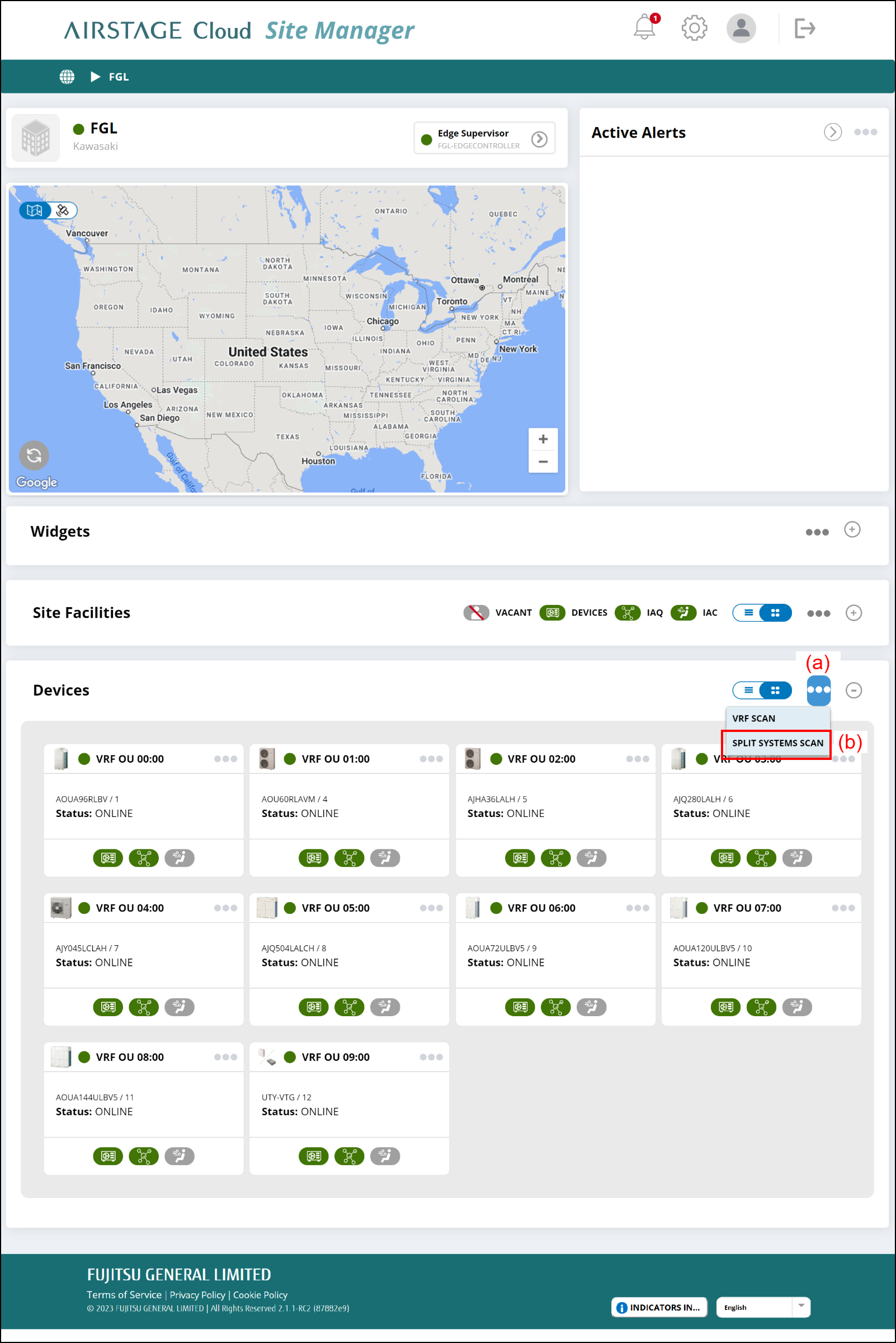 - Select the button (a) of “Devices” on the Site dashboard screen.