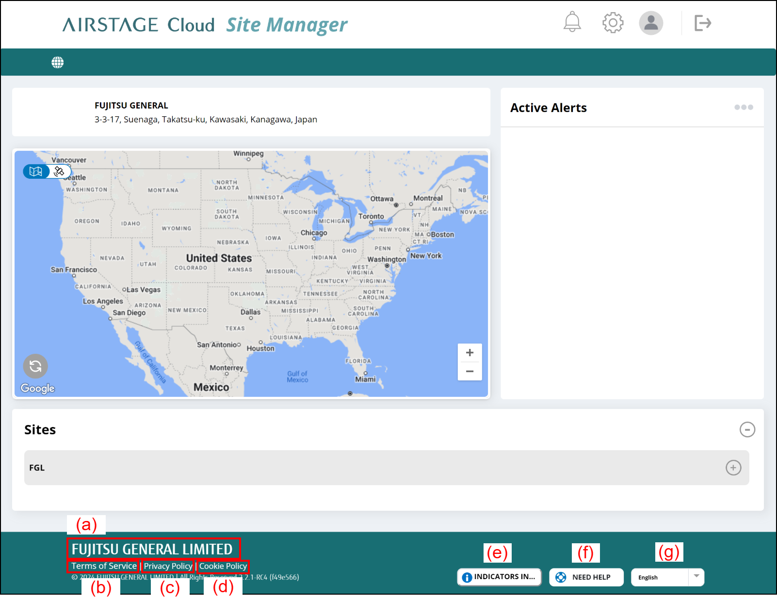 Shows the instructions of icons used in AIRSTAGE Cloud Site Manager.