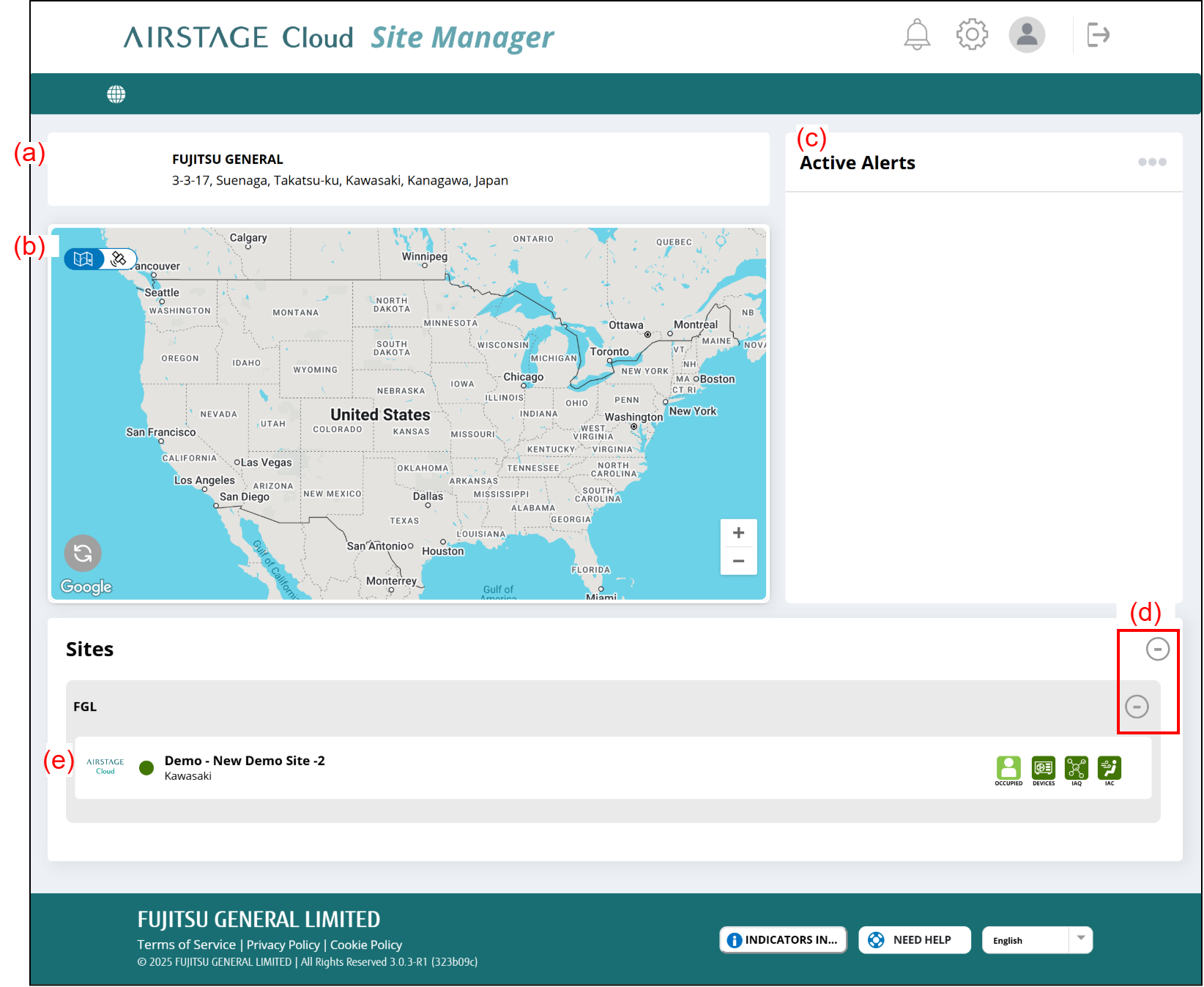 - Operating status are displayed for all Sites.