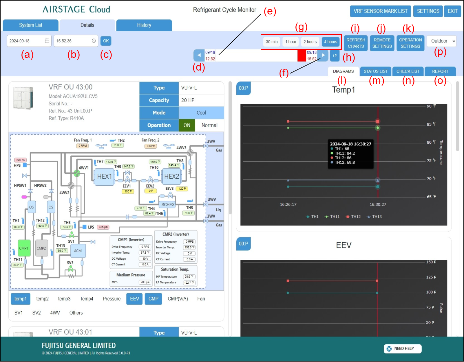 Outdoor Unit schematic and graph area