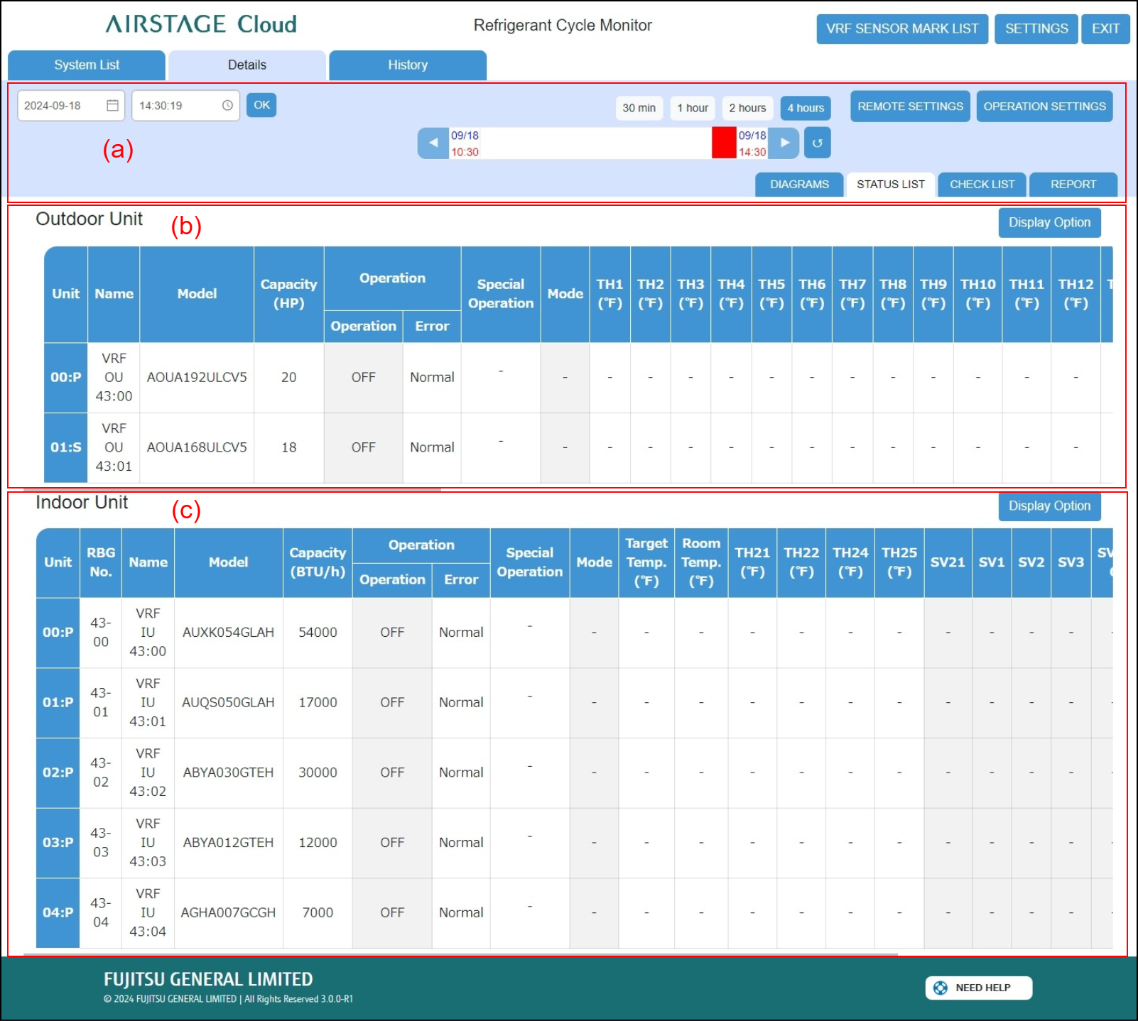 (b) Outdoor Unit status list area
