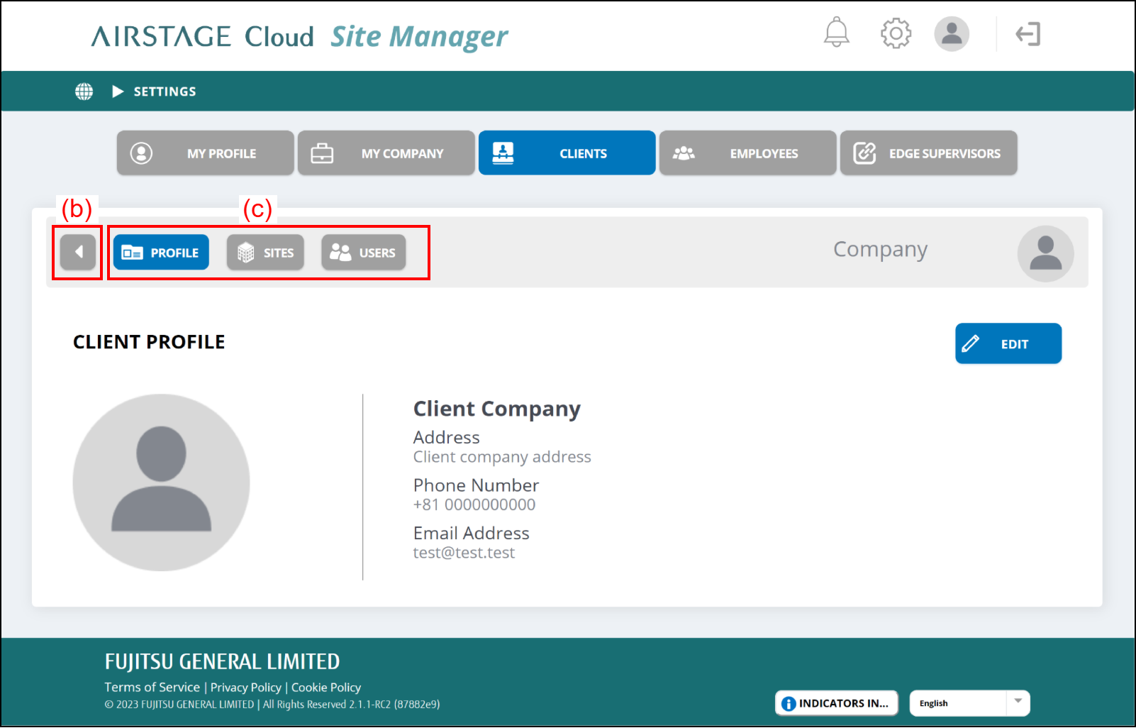 | Sites | You can check, edit, add, or delete the Sites under the client. |