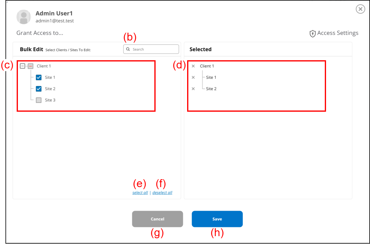 | (e) | [select all] | It selects all clients and Sites. |