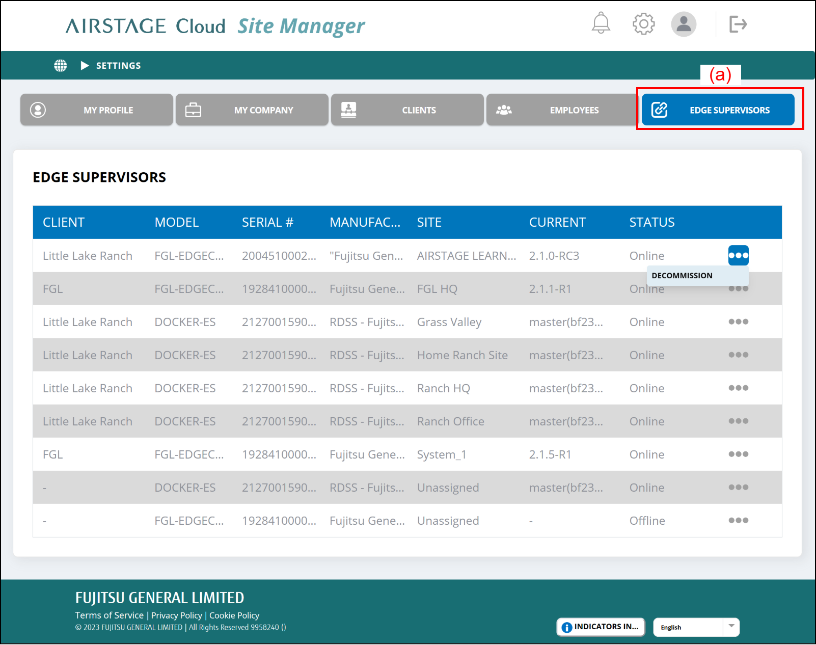 The "Edge supervisors" screen will be displayed and you can check the list of the edge supervisor.