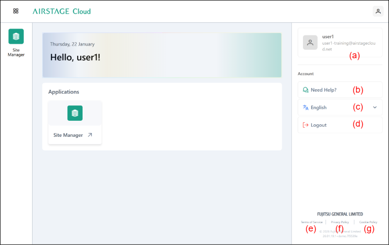 Click to log out of the AIRSTAGE Cloud.