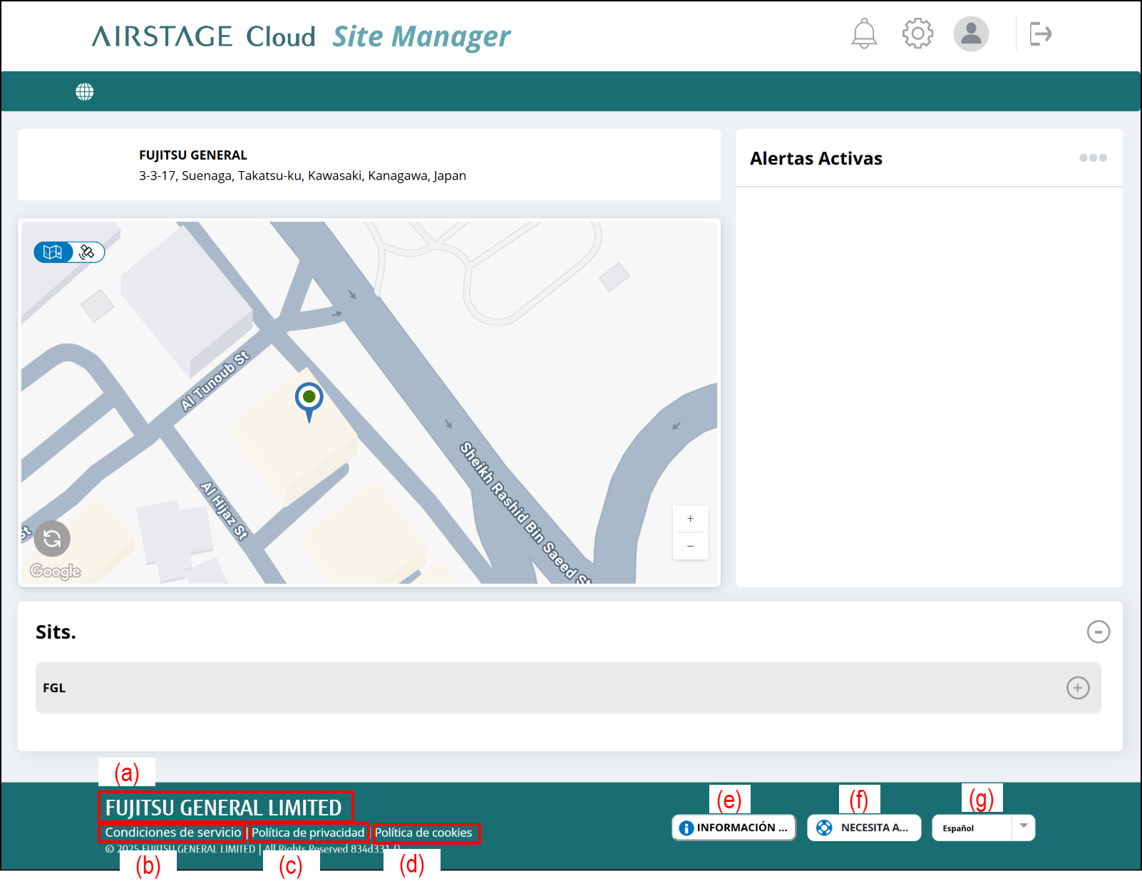 Muestra las instrucciones de los iconos utilizados en AIRSTAGE Cloud Site Manager.