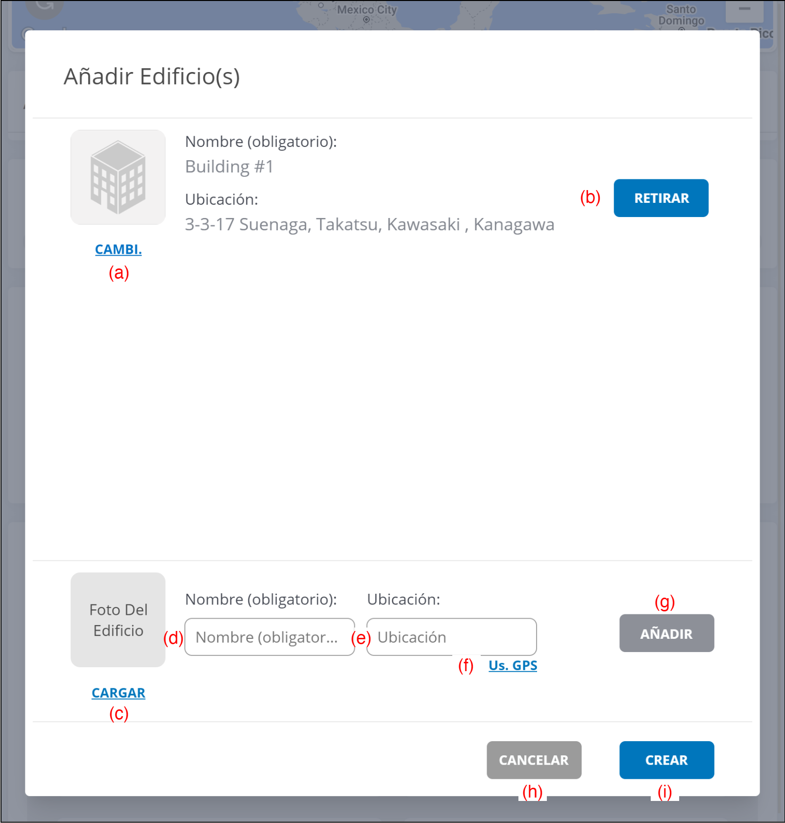 (e) Introduzca la Ubicación del edificio.