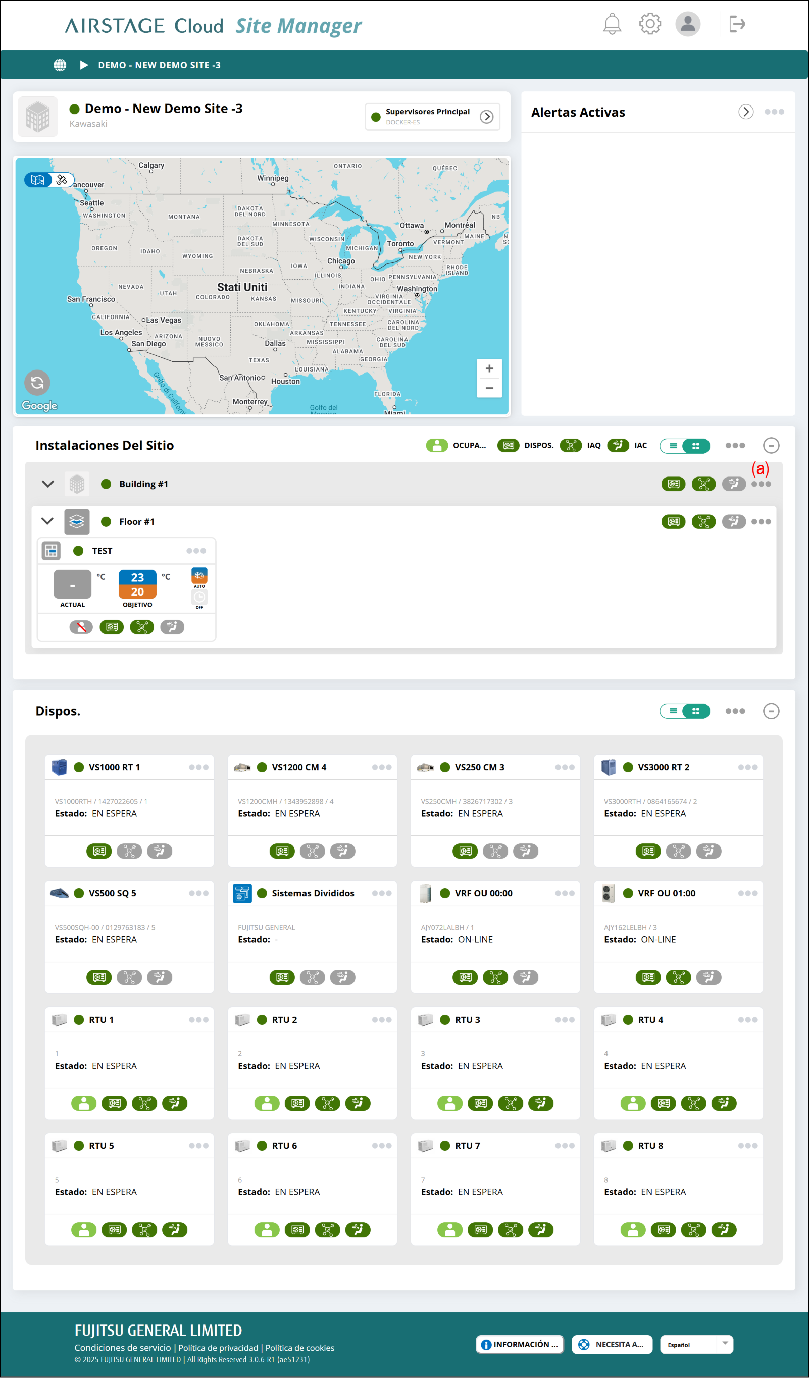 - Seleccione [AJUSTES DEL EDIFICIO] en el menú de enlace (a) de la pantalla “Panel de control del sitio”.
