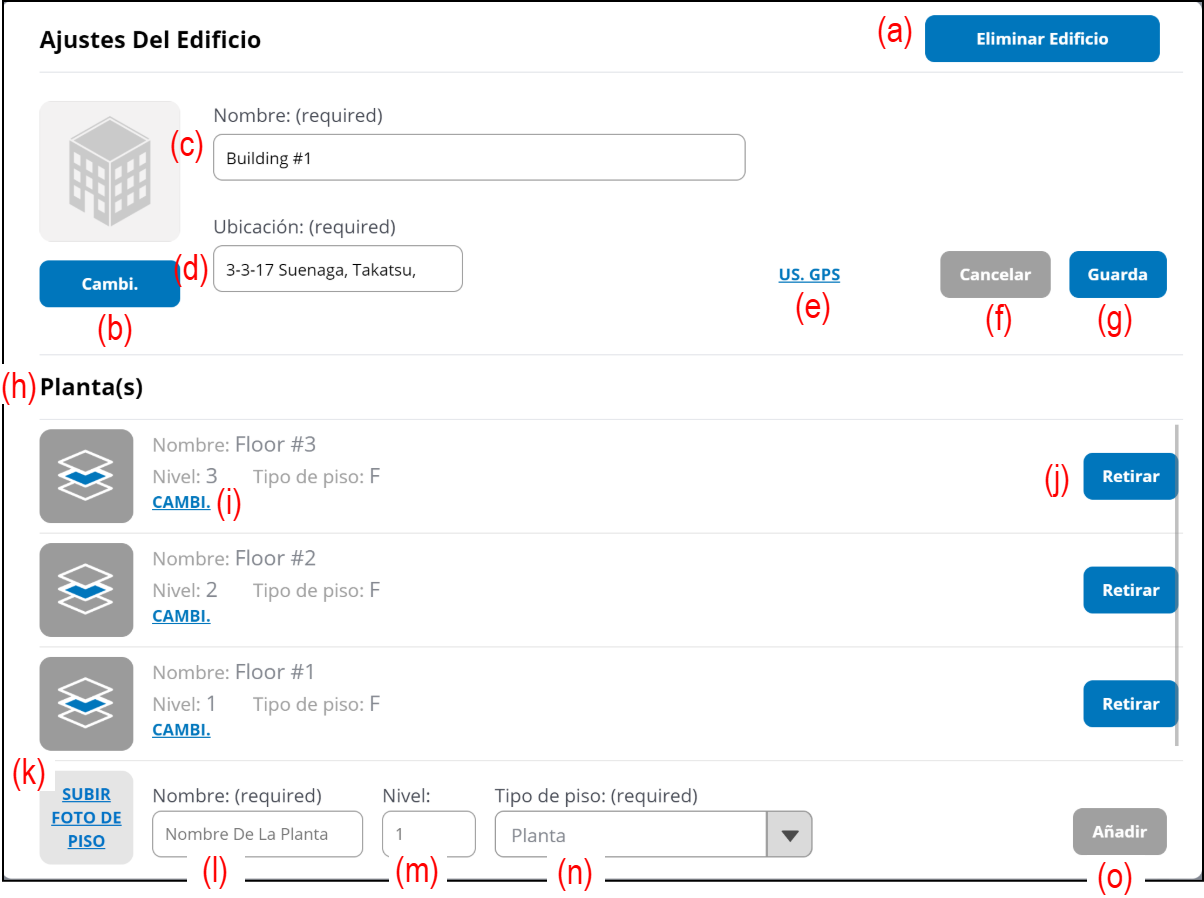 El cambio de ajustes o la eliminación puede realizarse para un edificio.