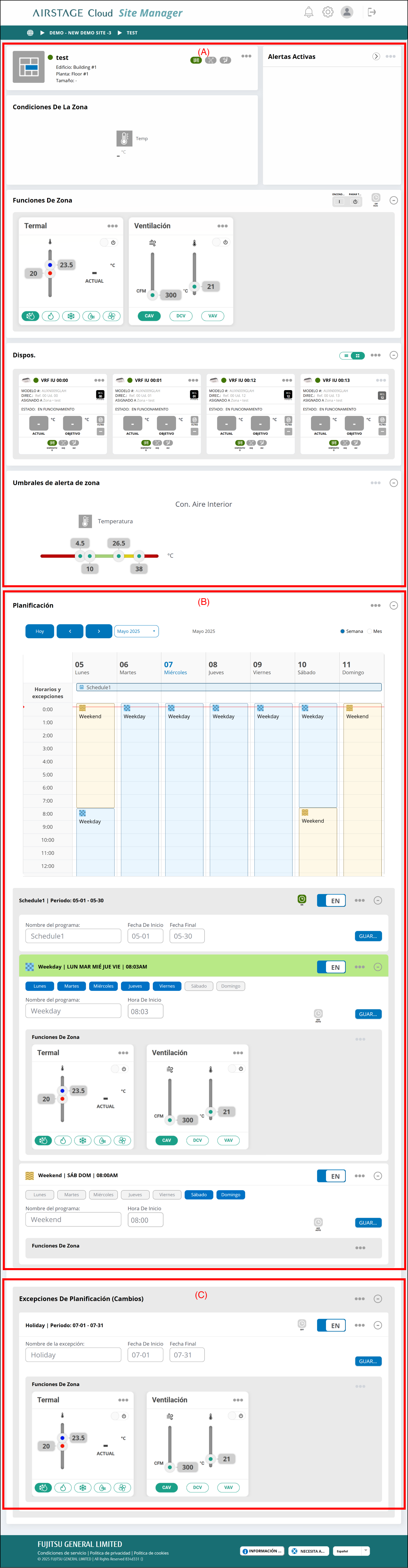 El ajuste de cambio o eliminación puede realizarse por zona.