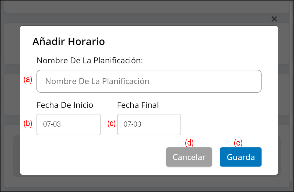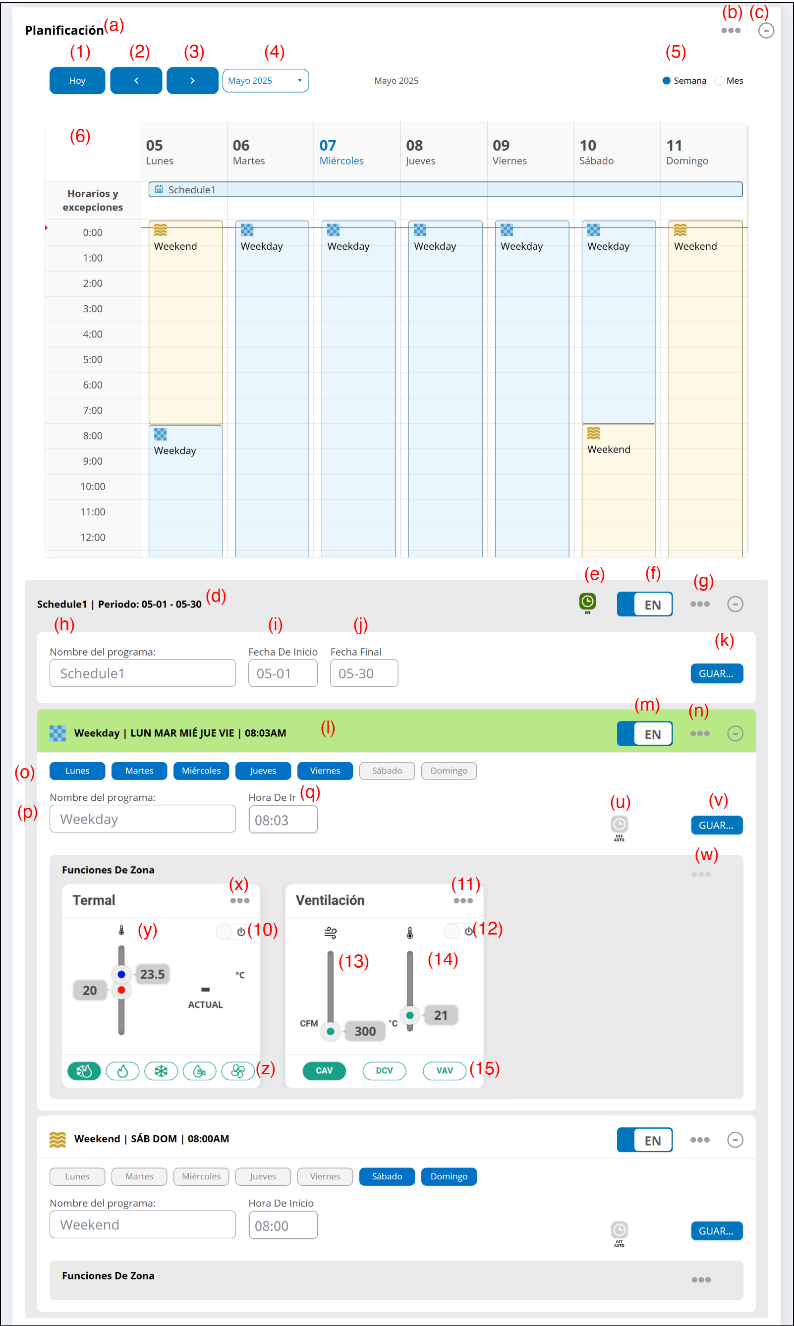 (9) El programa de horario se muestra hasta la fecha de finalización, por lo que se muestra solapado con la siguiente fecha de inicio del programa.