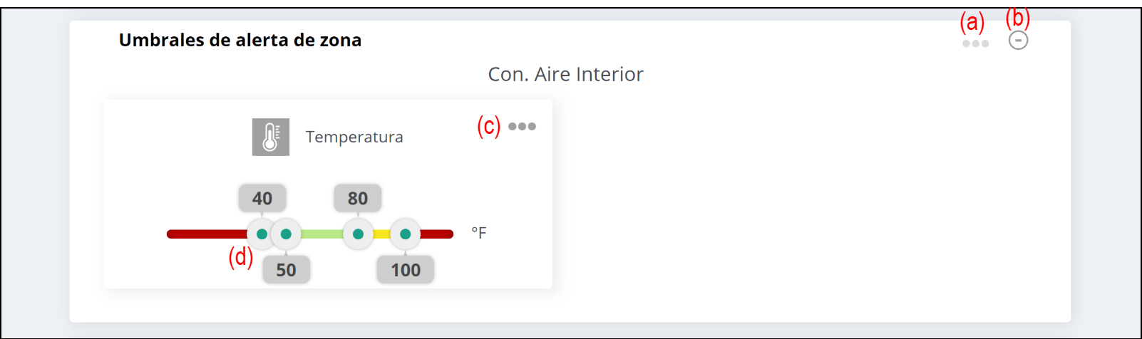 Realice la adición, cambio de ajuste y retirada para Umbrales de alerta de zona
