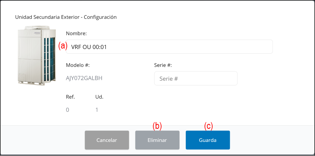Muestra la ventana “Unidad Secundaria Exterior - Configuración”.