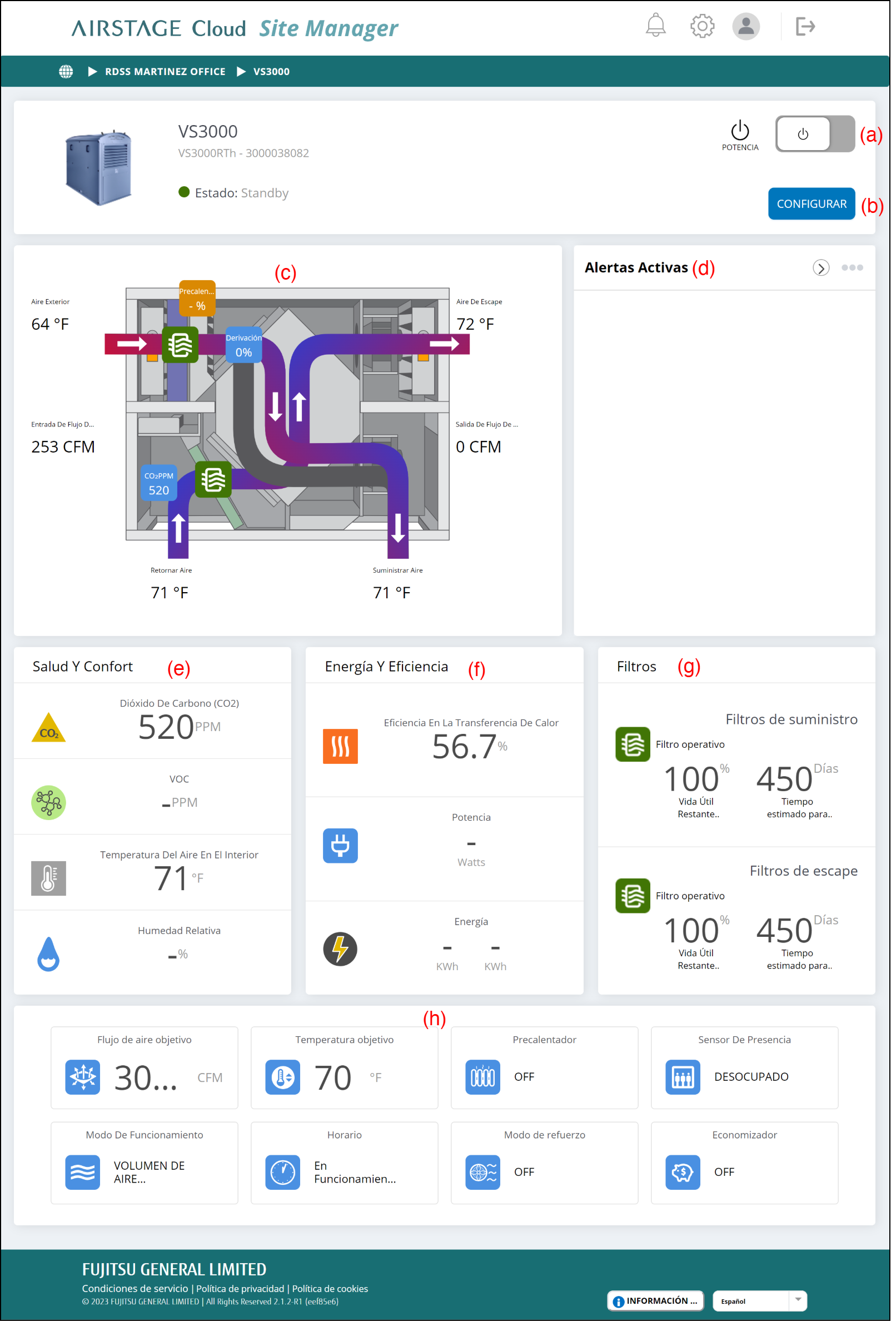 | Dióxido De Carbono (CO2) | Muestra la concentración de CO2 cuando el sensor de CO2 está conectado. |