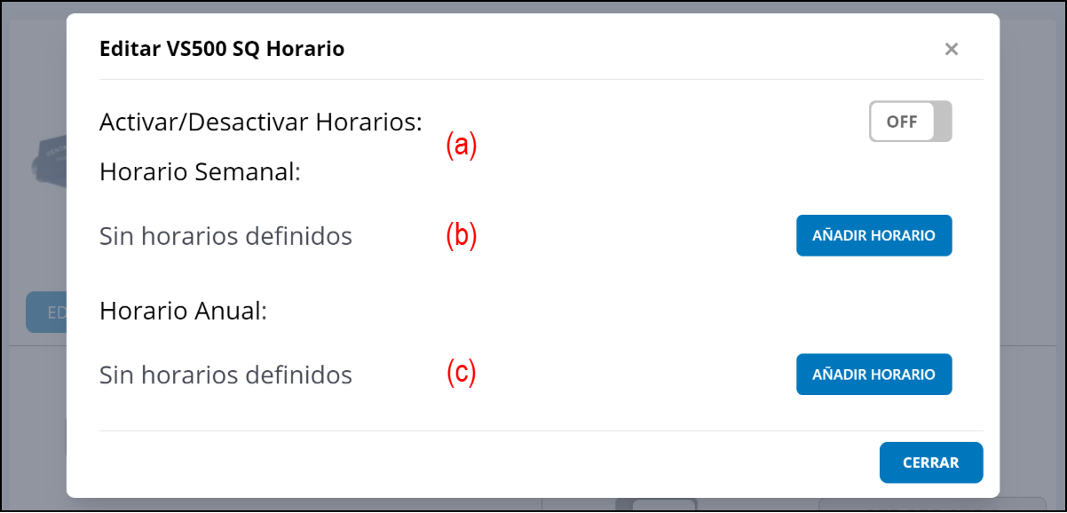 Haga clic en el botón [AÑADIR HORARIO] para acceder a la pantalla de detalles.